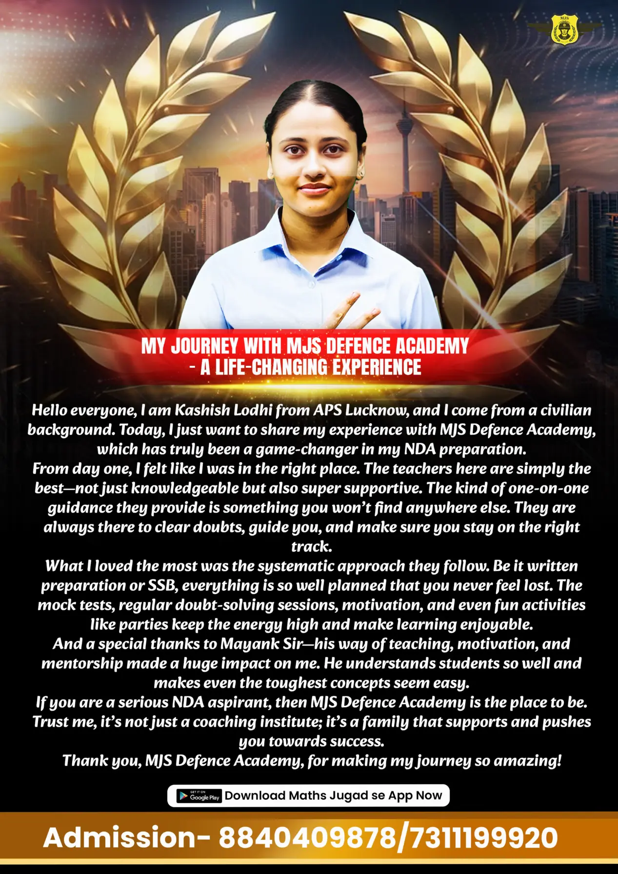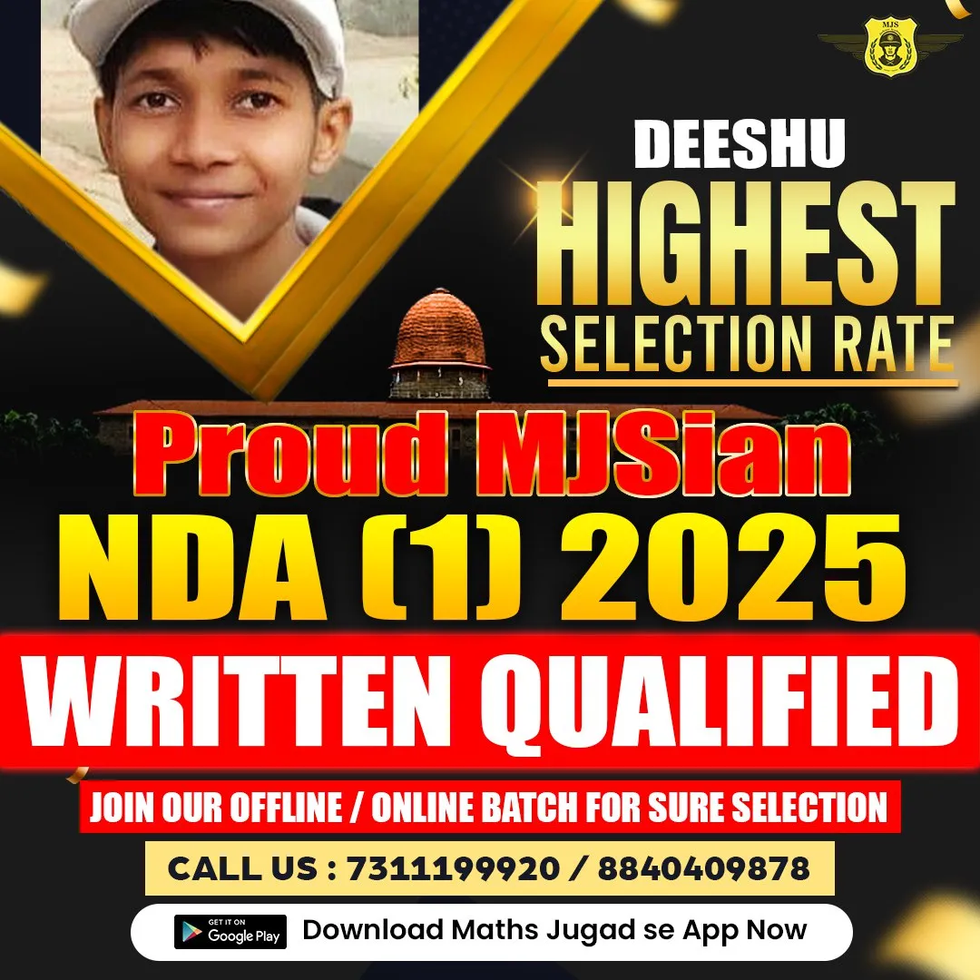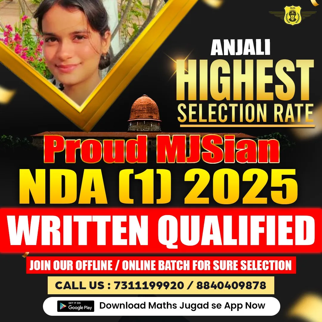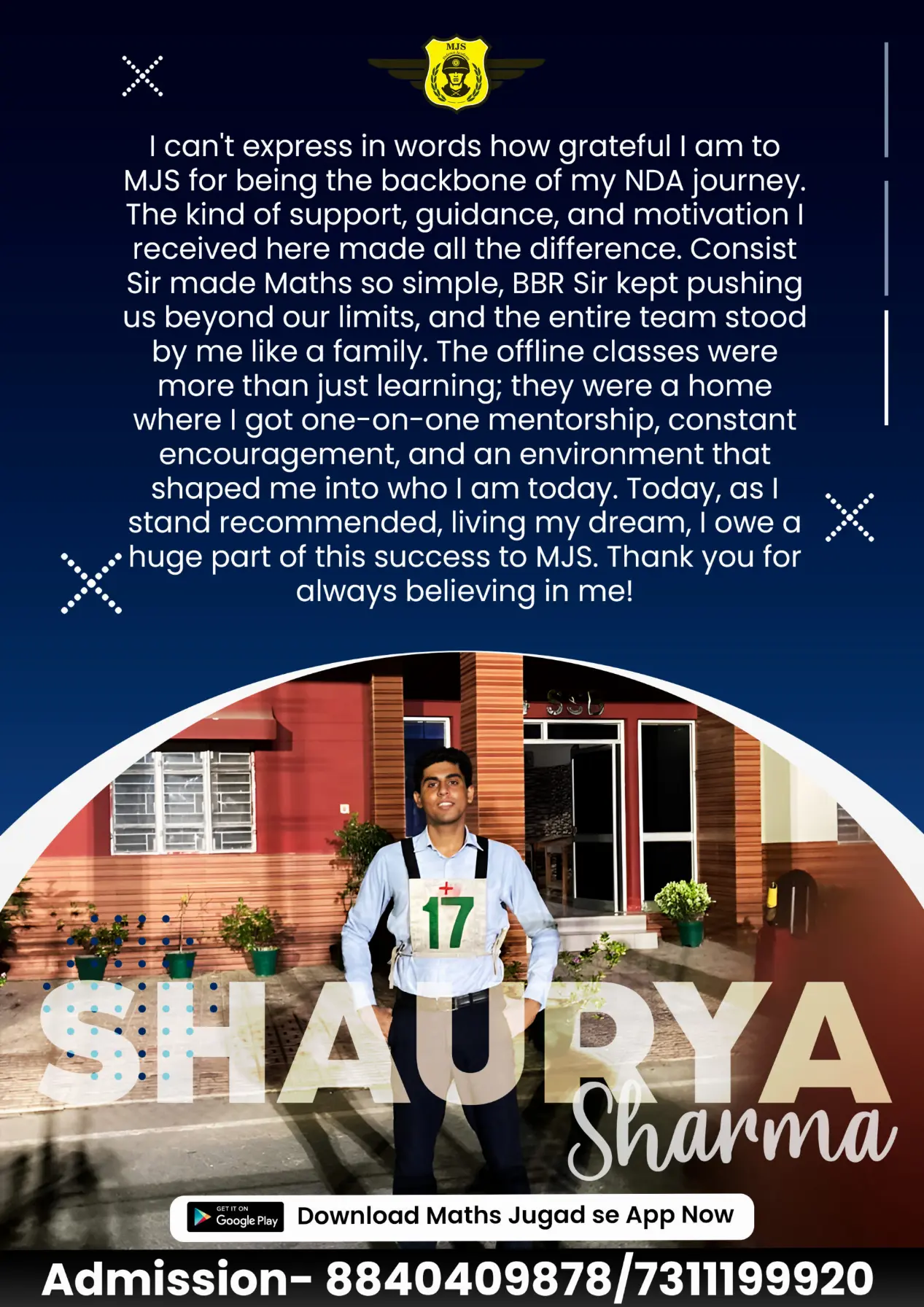 I cleared my NDA 2 2023 examination with the selfless support and love of all teachers of this academy. MJS is not a coaching , it's a family with full of love,joy and support for every individual defence aspirant.❤️❤️🙏🙏