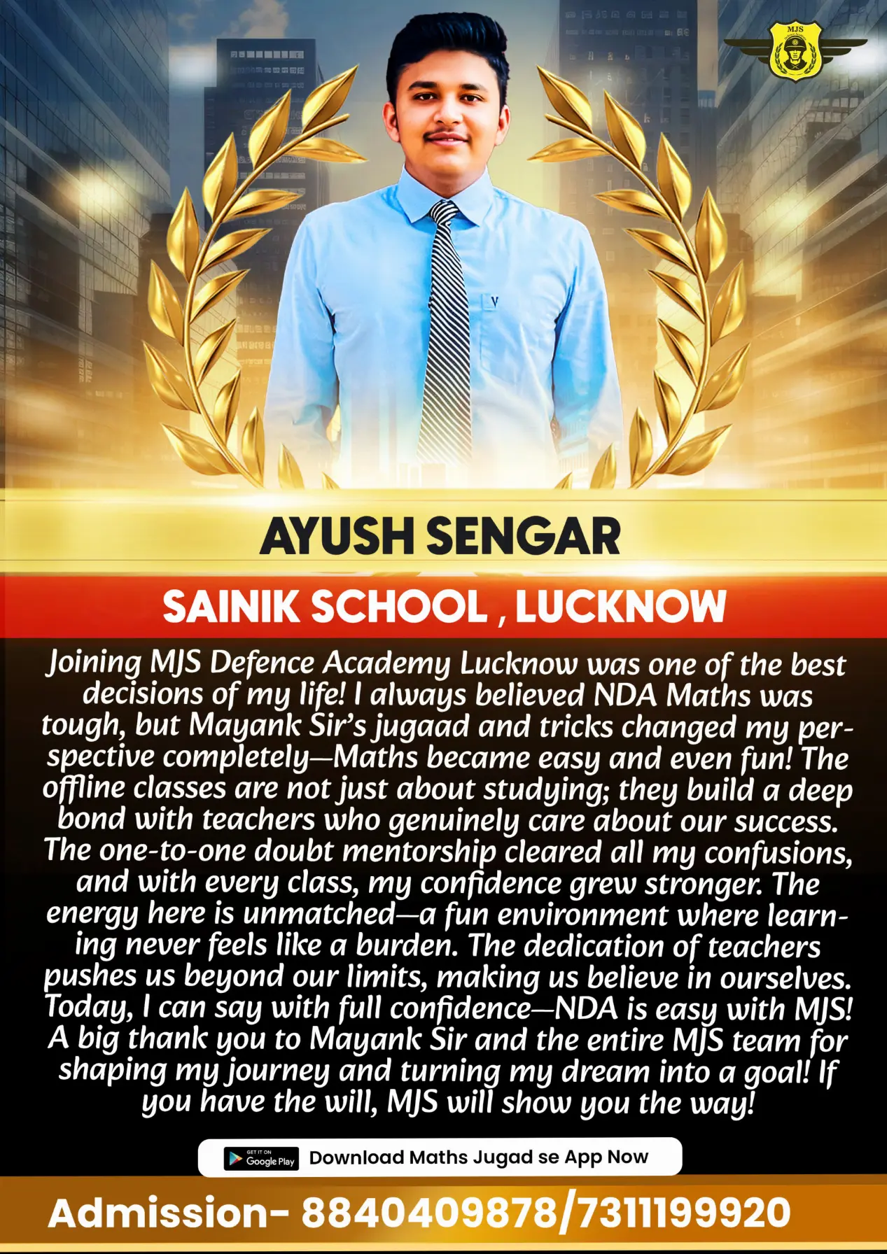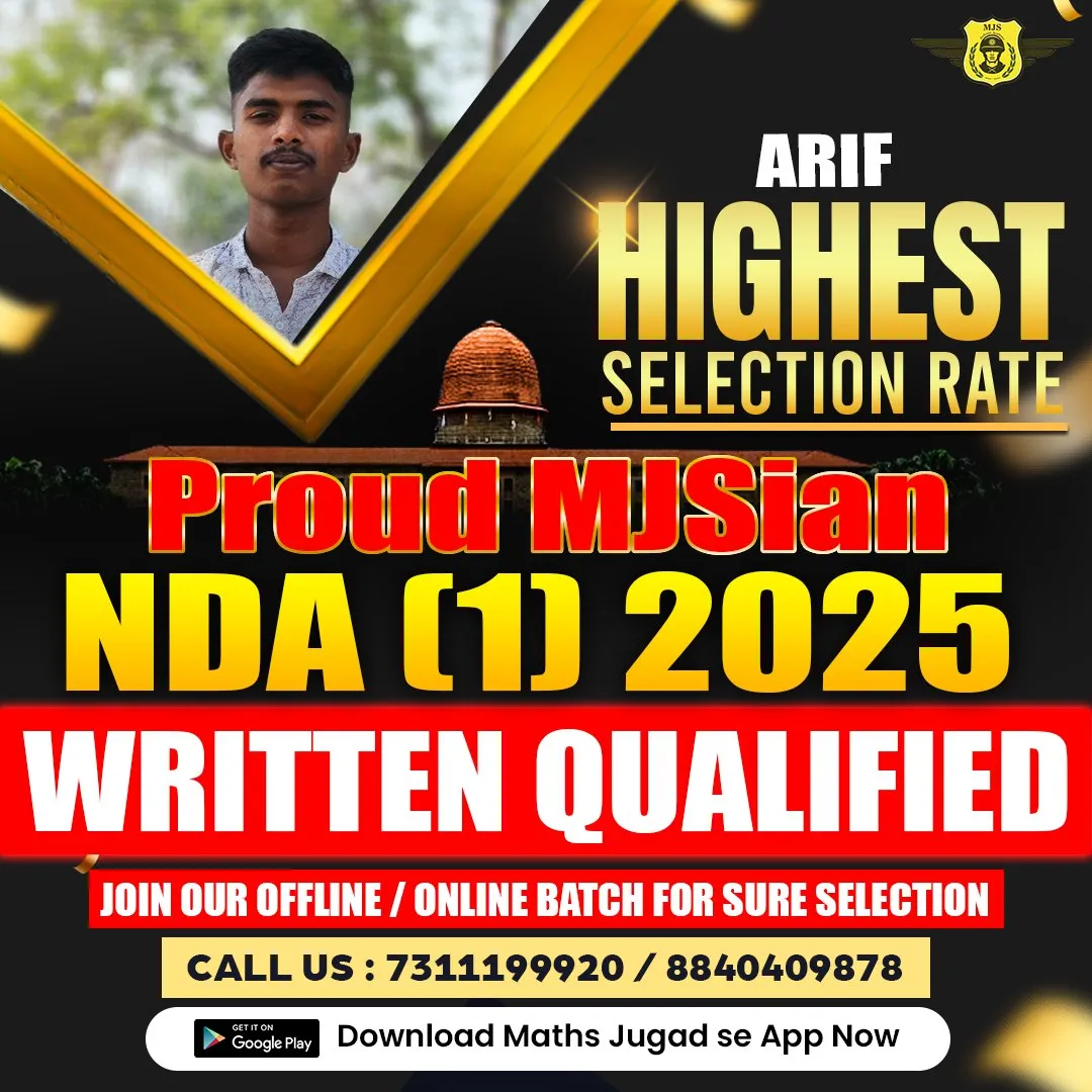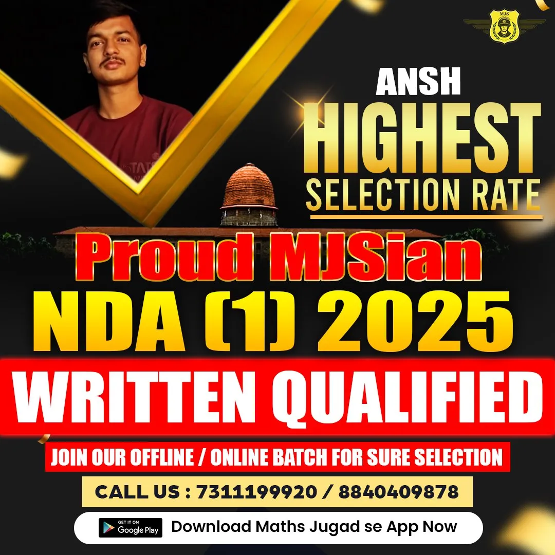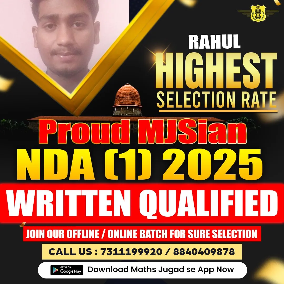 I cleared my NDA 2 2023 examination with the selfless support and love of all teachers of this academy. MJS is not a coaching , it's a family with full of love,joy and support for every individual defence aspirant.❤️❤️🙏🙏