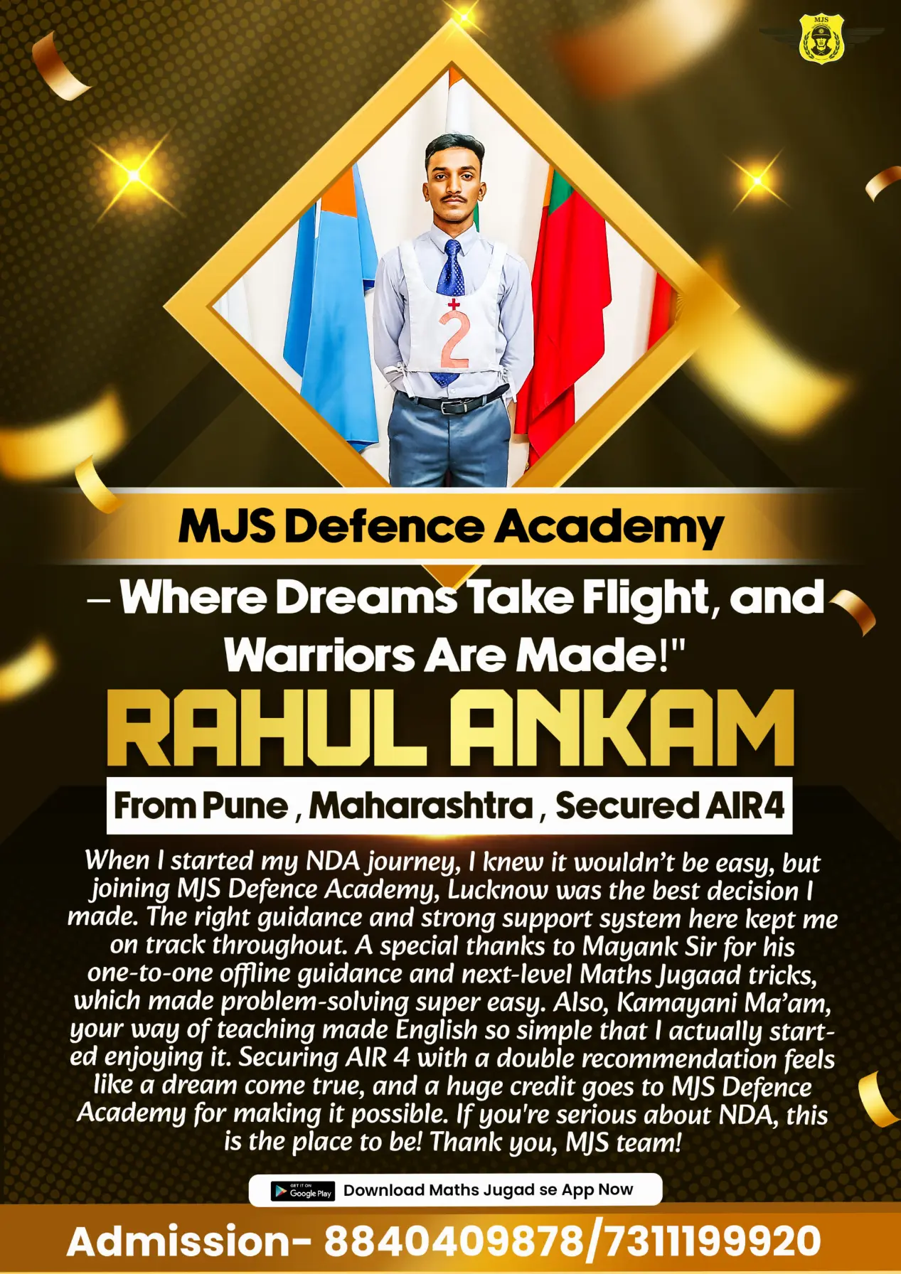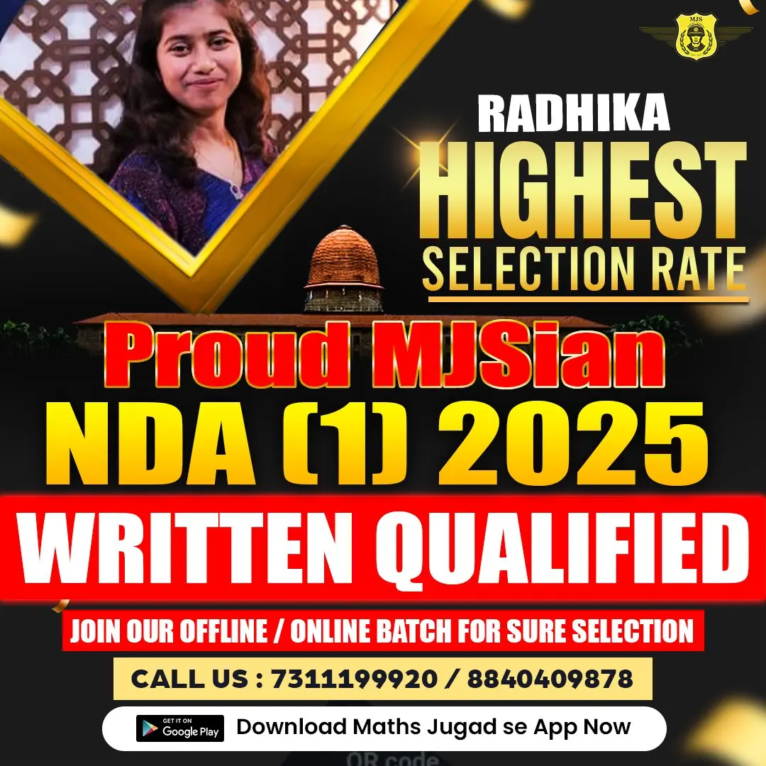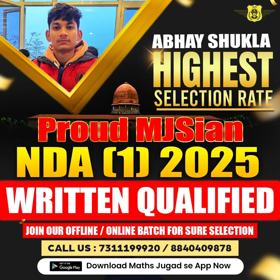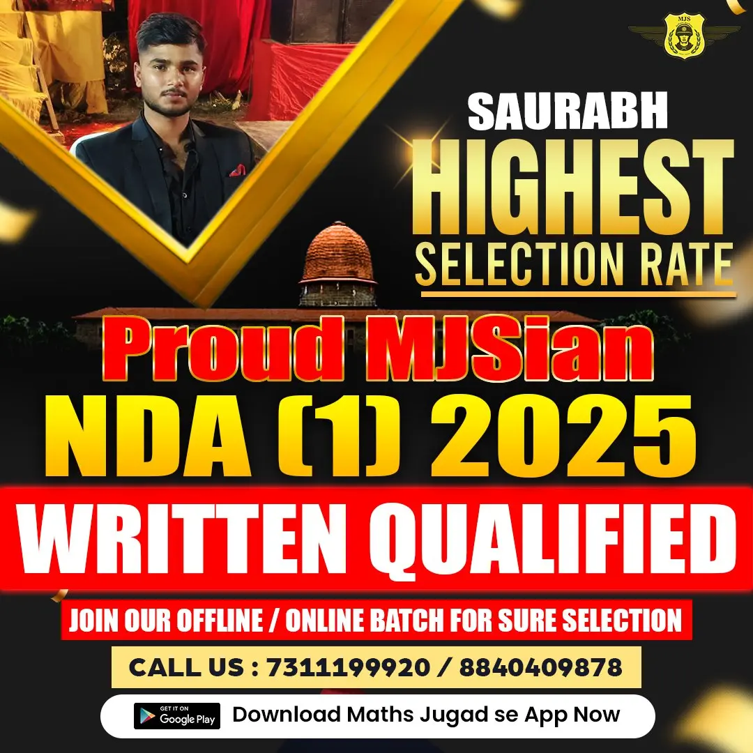 I cleared my NDA 2 2023 examination with the selfless support and love of all teachers of this academy. MJS is not a coaching , it's a family with full of love,joy and support for every individual defence aspirant.❤️❤️🙏🙏