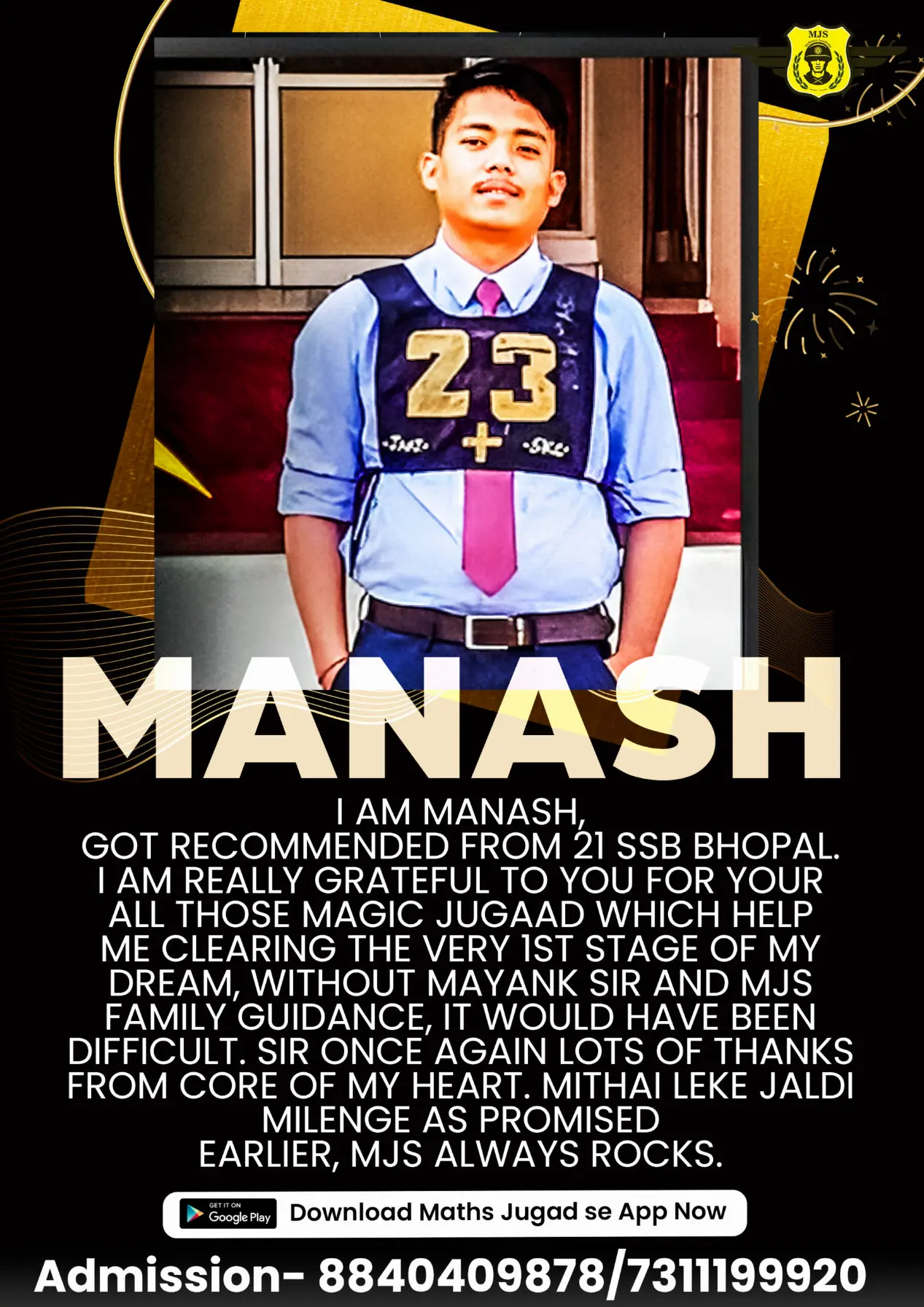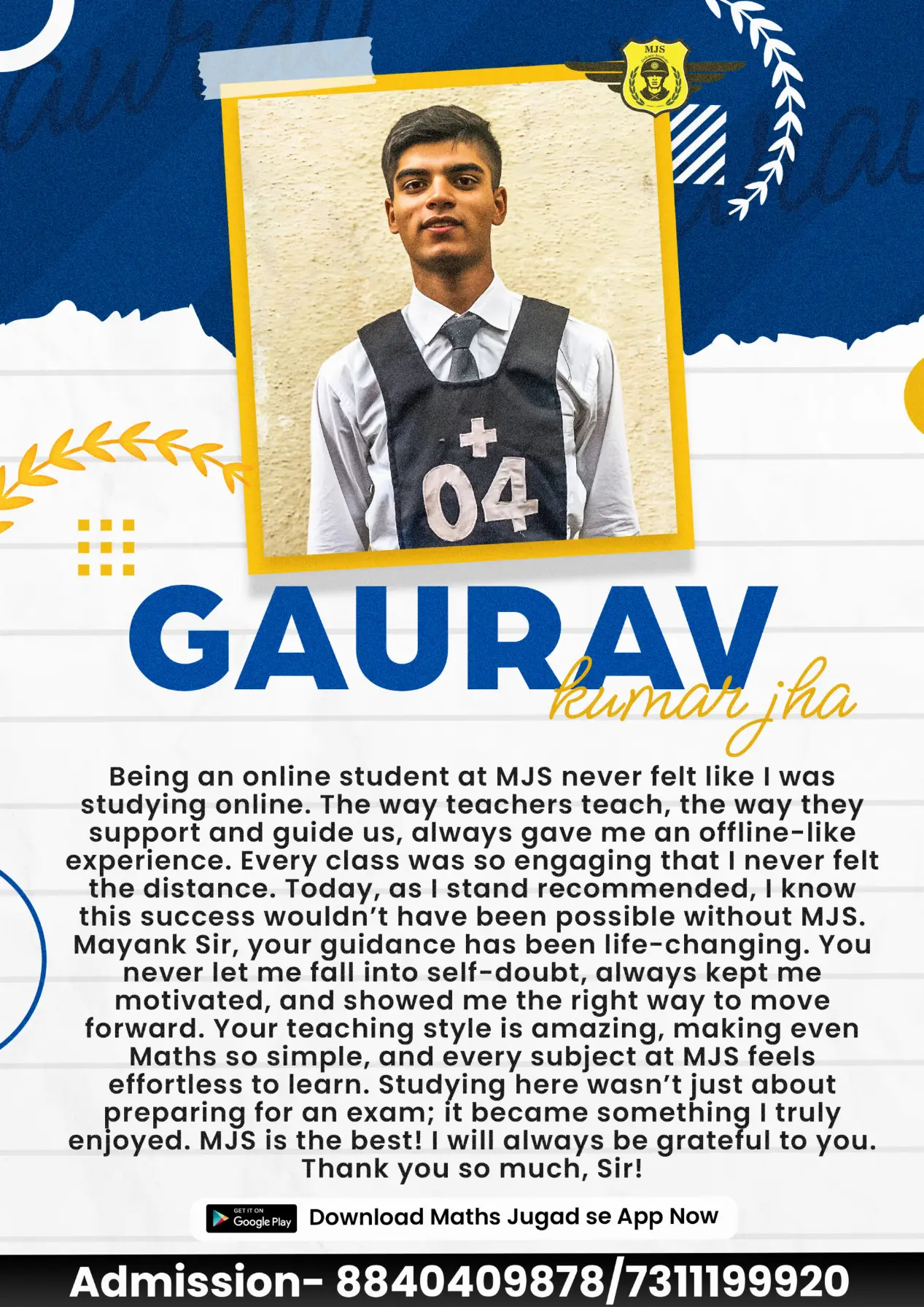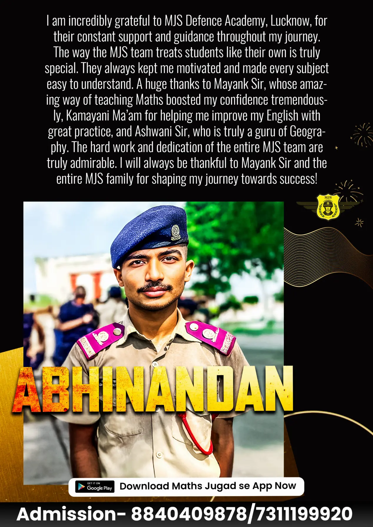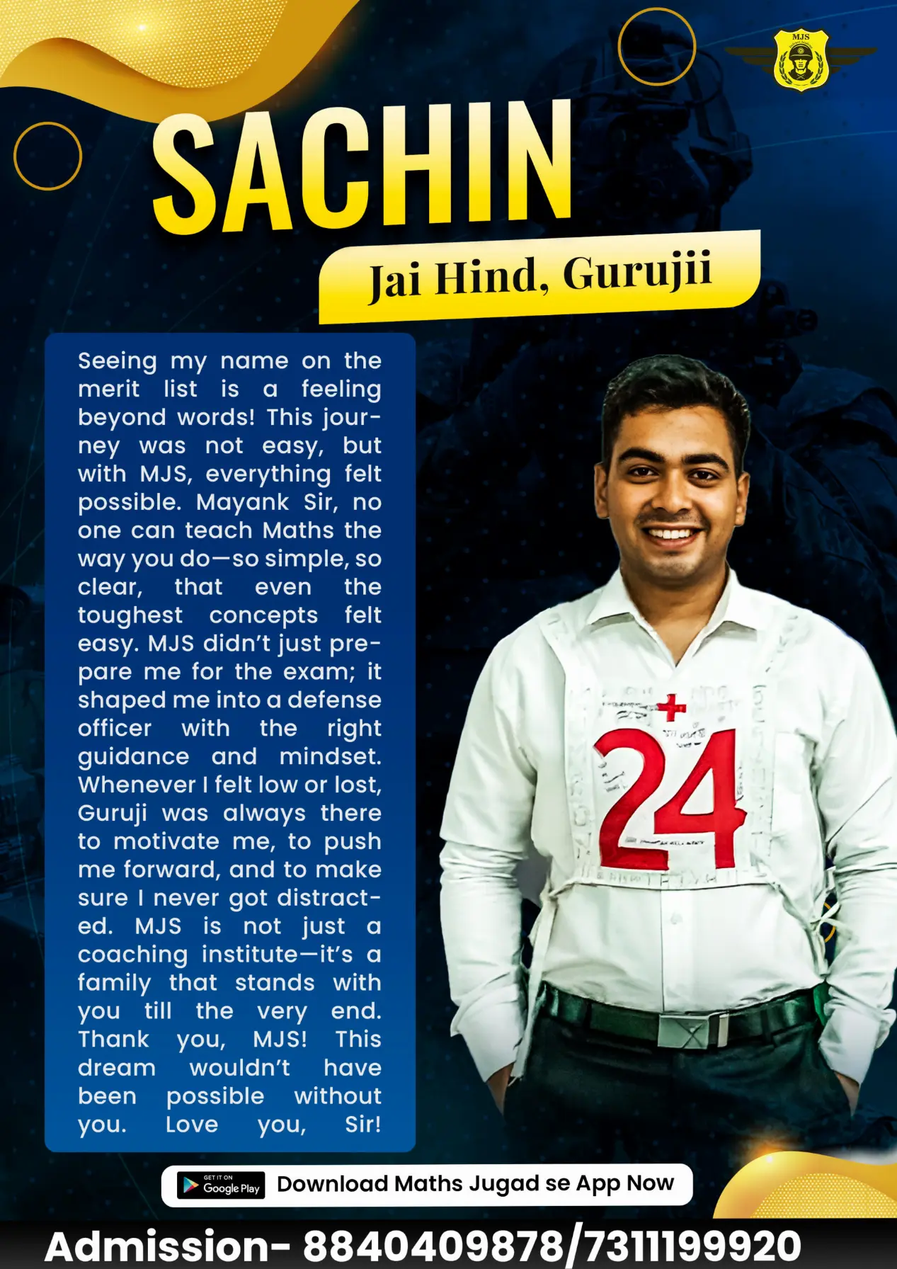 I cleared my NDA 2 2023 examination with the selfless support and love of all teachers of this academy. MJS is not a coaching , it's a family with full of love,joy and support for every individual defence aspirant.❤️❤️🙏🙏