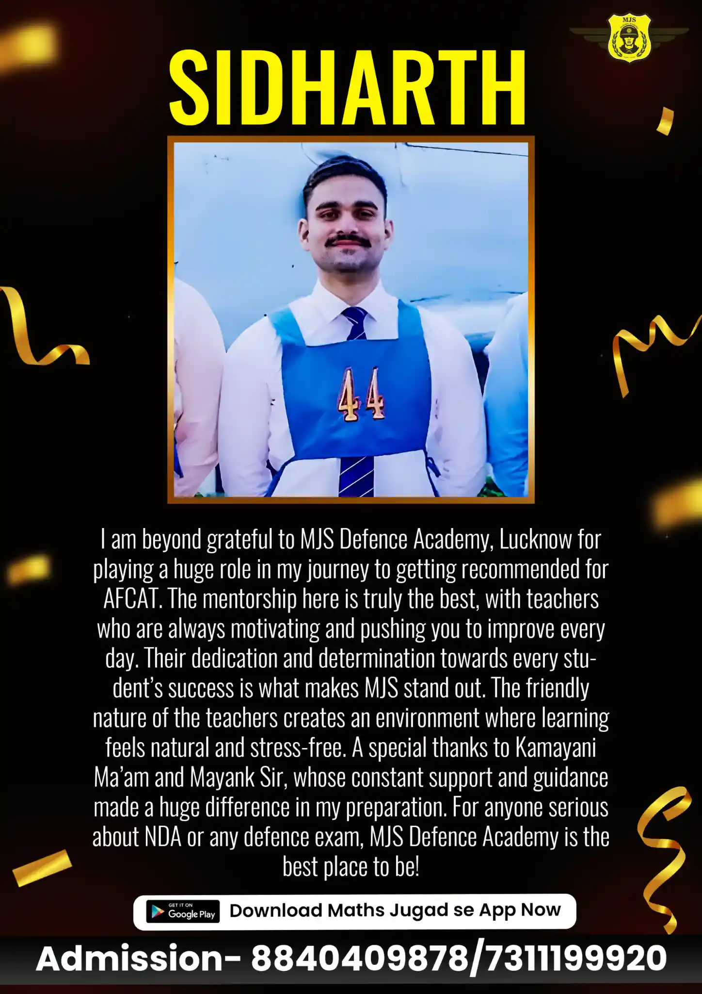 I am Siddharth Goswami from selection offline batch. Mjs defence academy is good defance academy in Lucknow. Mjs defence academy ka teachers sir nahi but va hamara bada bhai or ma jasa ha❤️.. This teachers is very good. Mjs defence academy is not a academy but this is my family. Mjs academy ka technical staff bhi accha ha. Mjs defence academy is best defence academy in Lucknow. Mjs defence academy is best defence academy in India 🇮🇳.